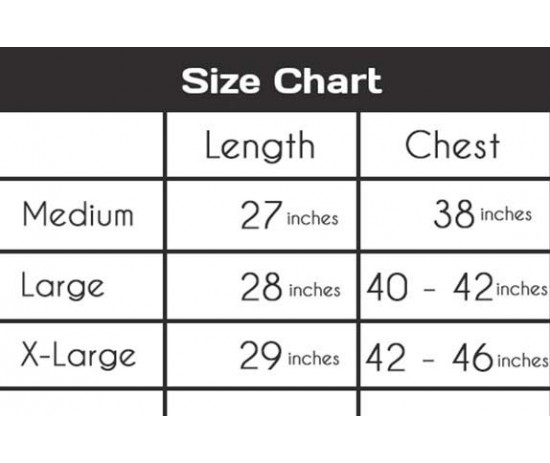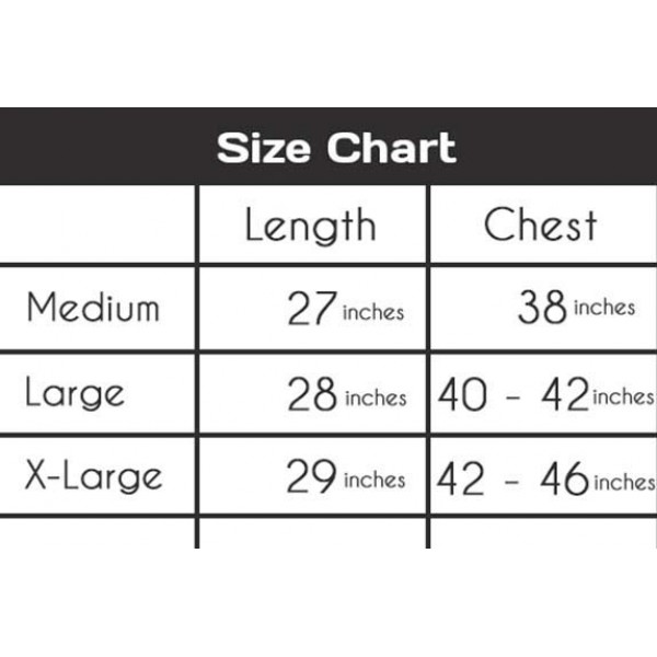 Sizes: Medium,Large & X-Large